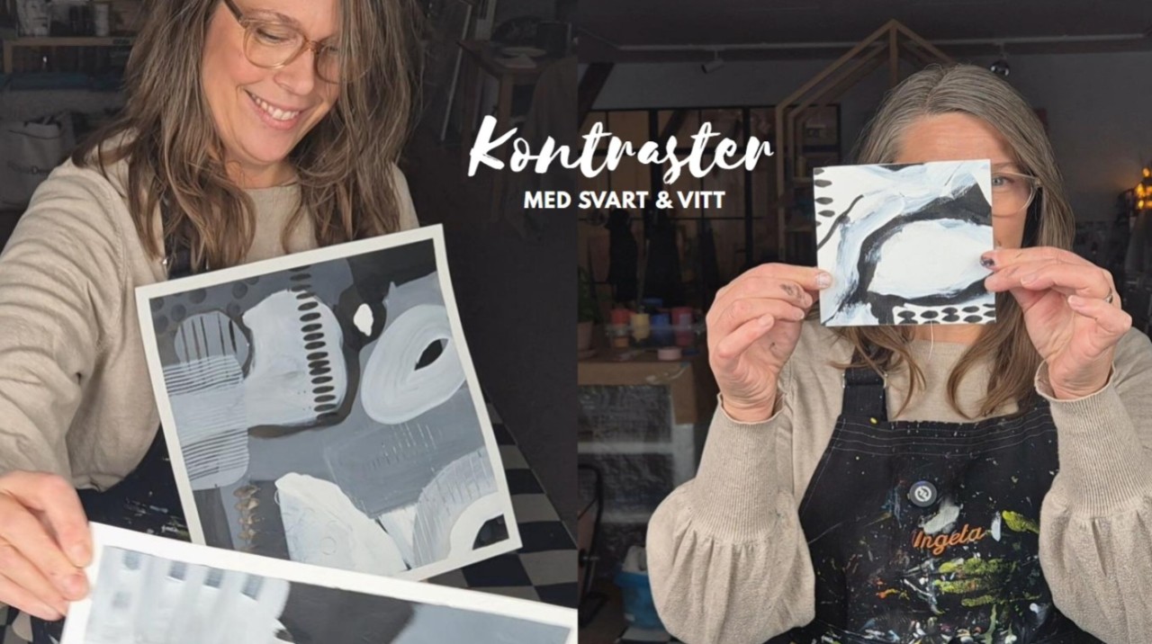 I den här minikursen står kontraster i centrum – svart och vitt, ljus och mörker. Just kontrast är ett av de mest kraftfulla uttrycksmedlen inom måleri, särskilt i det abstrakta. Färger kan ofta förföra och distrahera, de lockar oss in i detaljer. Men när vi plockar bort färgen och istället arbetar i svartvitt eller gråskala blir det lättare att se det som annars gömmer sig. Plötsligt träder form, struktur, rytm och energi fram med större tydlighet.
